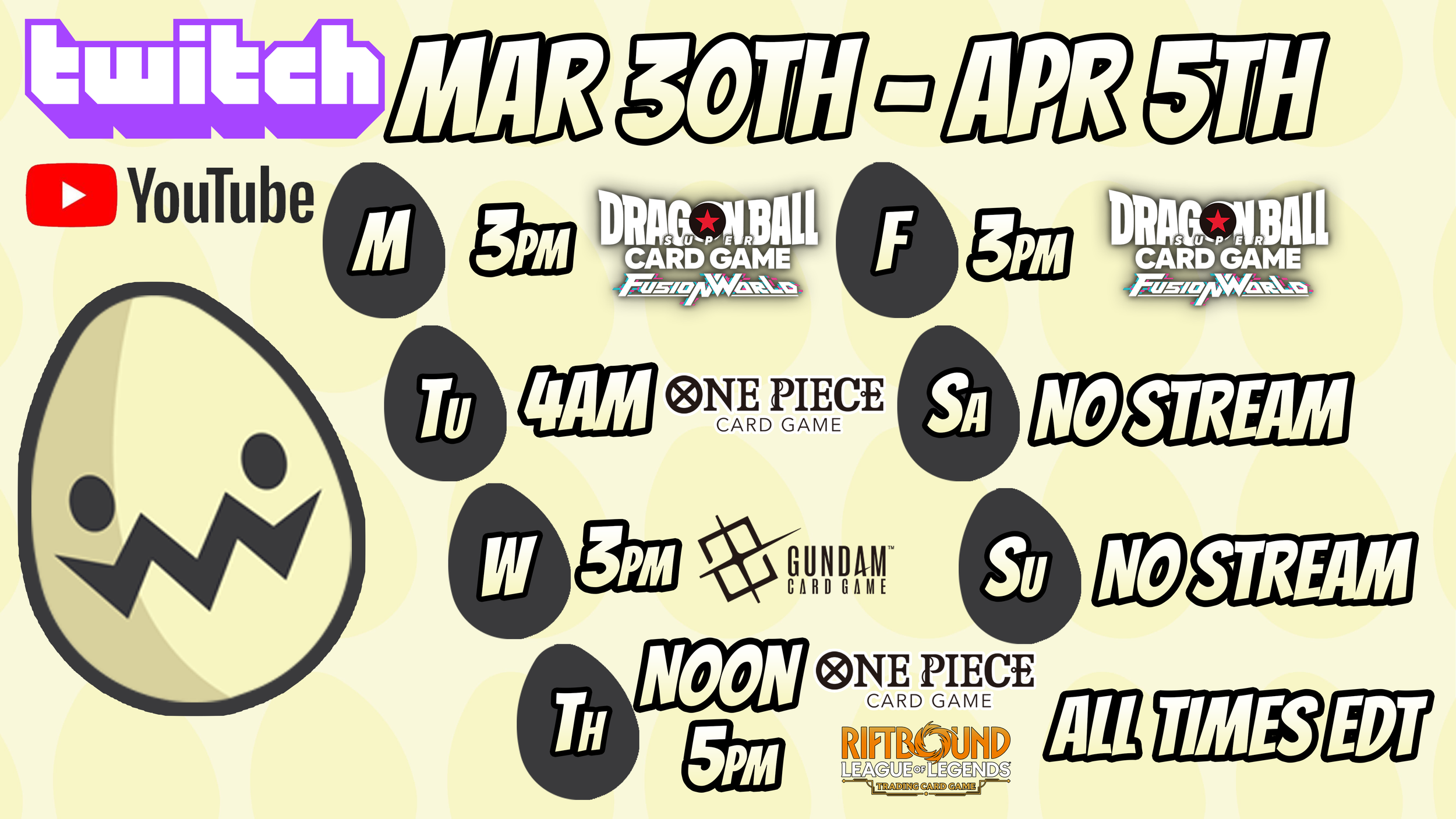 Featured Event: Featured Mar 30, 2026 [ENG EB03] CoreTCG Pomona Treasure Cup Mar 30, 2026 Mar 30, 2026 Stream Schedule Upcoming Event Featured Jan 1 Jan 1, 2027 More Events Coming Soon! Jan 1, 2027 Jan 1, 2027 Community Events New Content! OP15 Events OGN Events GD03 Events FB09 Events Recent Events Featured Mar 30, 2026 [GD03] Olli-Baba Dusseldorf Regionals Mar 30, 2026 Mar 30, 2026 Gundam Events Featured Mar 30, 2026 [ENG EB03] CoreTCG Pomona Treasure Cup Mar 30, 2026 Mar 30, 2026 One Piece Events Featured Mar 16, 2026 [SFD] Riftbound $25K Pro-Play Summit: Pittsburgh Mar 16, 2026 Mar 16, 2026 Riftbound Events Featured Jan 13, 2026 [FB08] Egman Events Triple Win-A-Box Jan 13, 2026 Jan 13, 2026 Dragon Ball Super Fusion World Events Featured Mar 30, 2026 [EX-11] TAK GAMES MARCH REGIONAL Mar 30, 2026 Mar 30, 2026 Digimon Events Featured Mar 9, 2026 [KGR] Carta Magica Union Arena Online Battle Mar 9, 2026 Mar 9, 2026 Union Arena Events Other Games